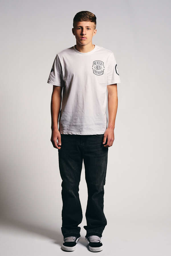Monochrome Edition. A classic clean white T-shirt crafted from premium cotton, featuring the Burton-on-Trent Ferry Bridge crest on the chest and deconstructed bridge elements across the sleeves. All prints are in bold black, creating a clean and timeless contrast. Inside, a hidden nod to our heritage - a classic Burton-on-Trent motif on the label. Made with pride. For the love of our town and our club.